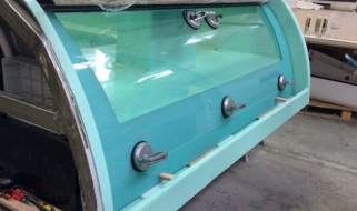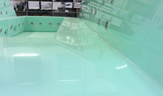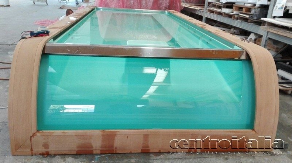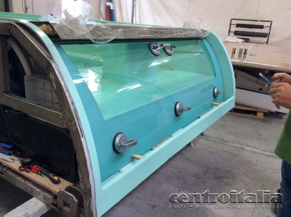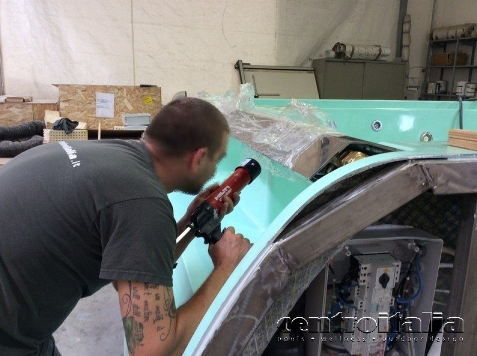 - Fissaggio dei vetri curvi alla scocca della vasca idromassaggio con apposito collante