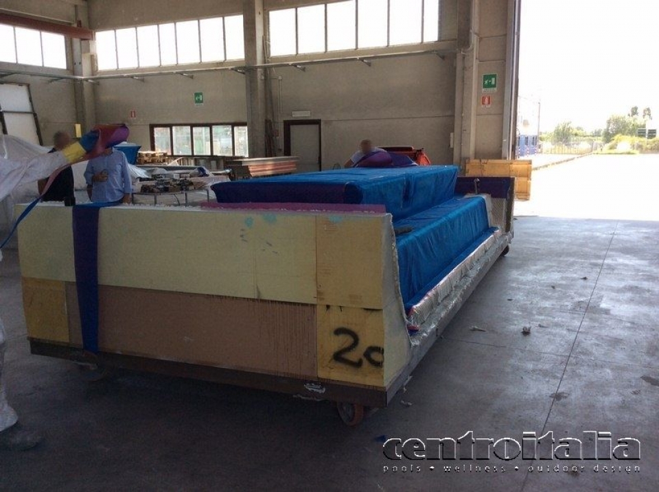 La vasca è stata realizzata nello stabilimento di Centrostiledesign di Imola, dove è stata assemblata su un telaio in acciaio inox per poterla caricare e inviare presso il mega Yacht in Turchia.
