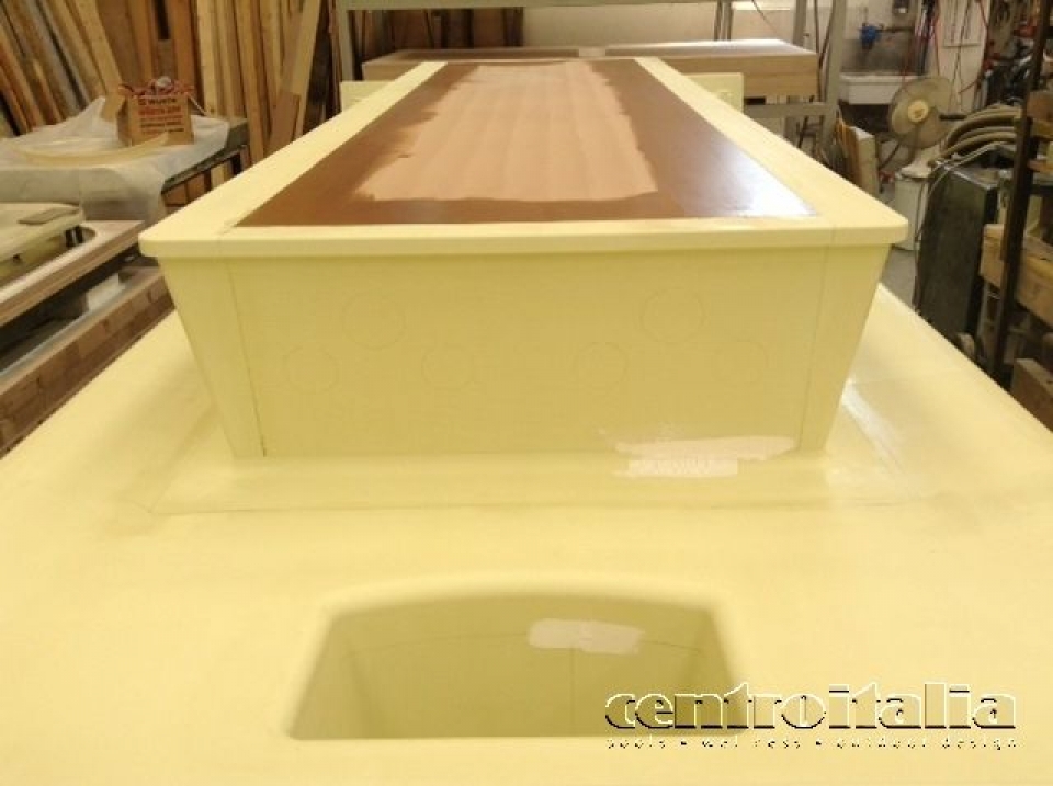 - Creazione del modello femmina in poliuretano ds. 70 kg/mc, finitura con 2 mani di resina con carteggiatura a grana da 110/160
