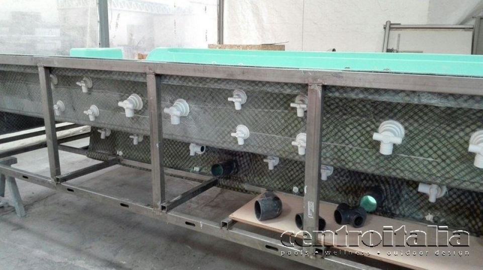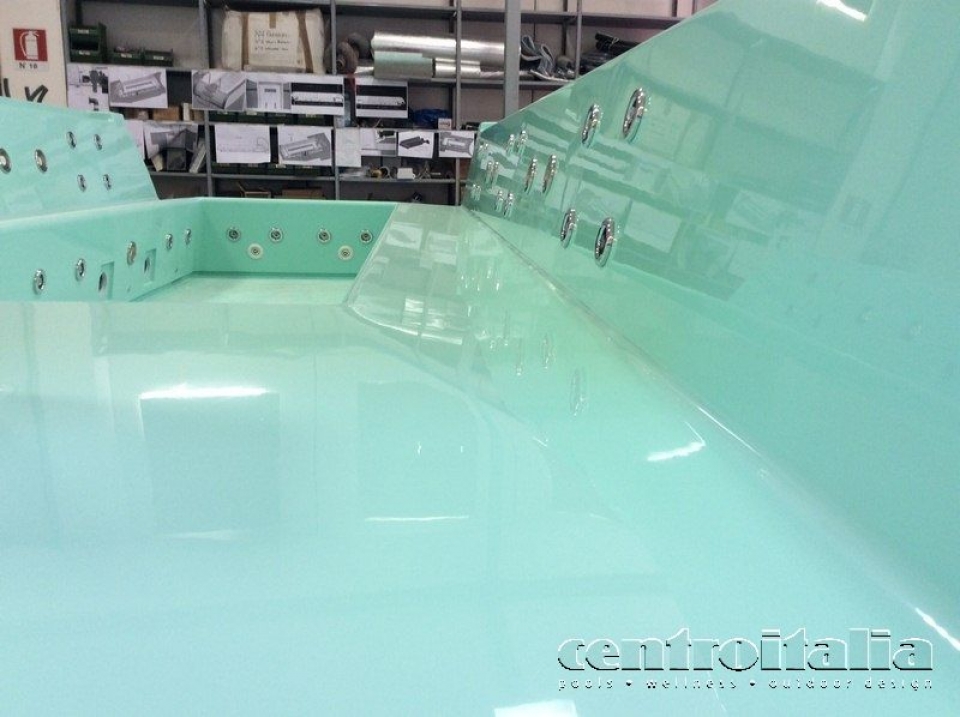 - Creazione della vasca idromassaggio completa in vinilestere rinforzata di spessore 20 mm