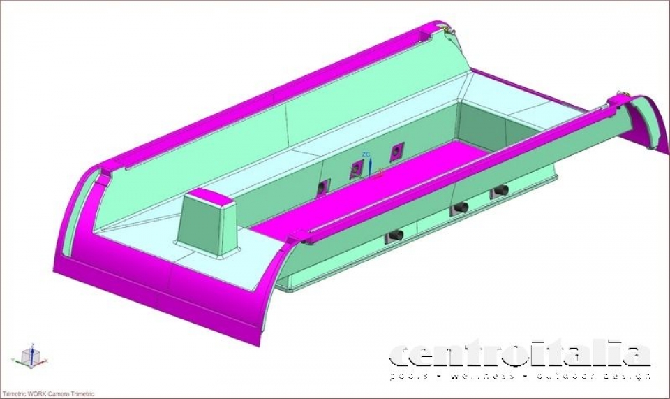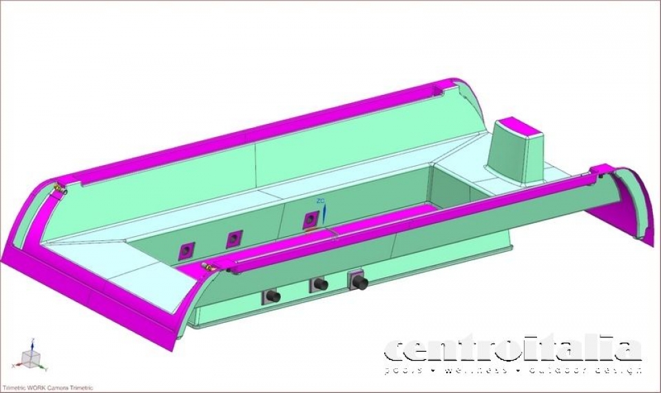 Per assicurarci il miglior risultato possibile a fine opera, Centro Italia Yachting® si è servita dei più avanzati sistemi di renderizzazione 3D per mappare passo passo tutti i più piccoli dettagli della vasca e avere un prototipo realistico e affidabile per la costruzione della struttura: passando dall'impiego del modello in poliuretano, alle vasca in vetroresina, all'assemblaggio dell'impianto e, a tutte le più piccole rifiniture.