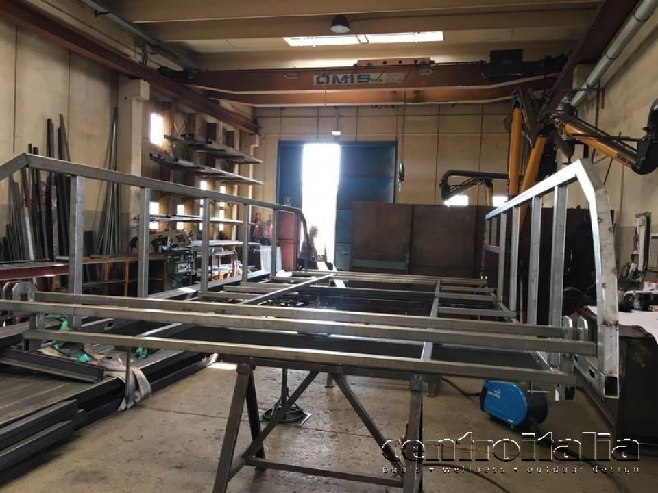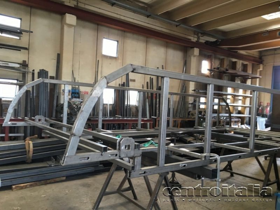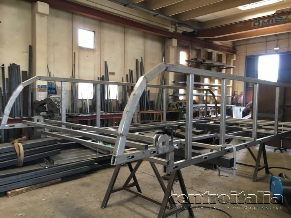 - Fissaggio ed alloggiamento della vasca idromassaggio ad un telaio in acciaio inox Aisi 316